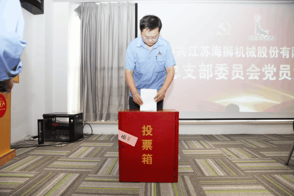 與會黨員以不記名投票方式差額選舉產(chǎn)生中共江蘇海獅機械股份有限公司總支部新一屆委員會。