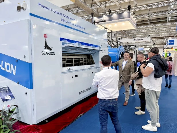 在2024法蘭克福國(guó)際紡織品專業(yè)處理展覽會(huì)(Texcare International 2024)的璀璨盛況中,11月6日這一天,德國(guó)法蘭克福展覽中心的8號(hào)展廳迎來(lái)了全球紡織業(yè)界的矚目焦點(diǎn),為紡織處理行業(yè)繪制了一幅充滿創(chuàng)新與活力的未來(lái)圖景。NO.1 現(xiàn)場(chǎng)動(dòng)態(tài)01 海獅現(xiàn)場(chǎng)在這場(chǎng)國(guó)際盛會(huì)中,江蘇海獅機(jī)械股份有限公司以其獨(dú)特的展位設(shè)計(jì)成為了展會(huì)